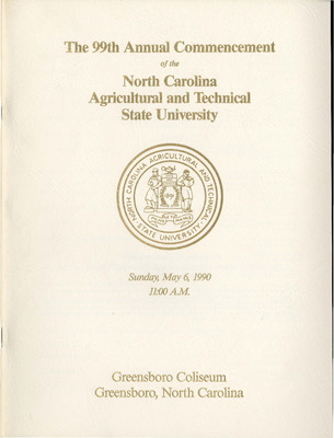 Complete print program for the Spring Commencement held Sunday, May 6, 1990 11:00am at the Greensboro Coliseum. The commencement address was given by Patricia Russell-McCloud, J.D., President of Russell-McCloud and Associates in Atlanta, Georgia.