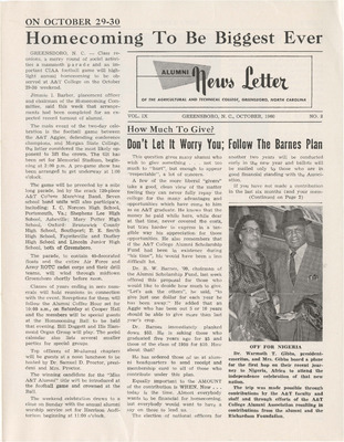 Alumni News Letter of the Agricultural and Technical College - October 1960