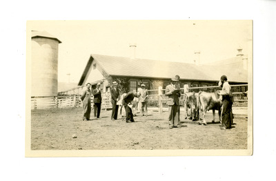 Boys judging dairy cows. Labeled 'U. S. Avi Herb.'
