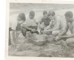 Young men cleaning fish